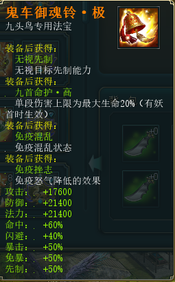 奖励:九头鸟专属法宝-鬼车御魂铃